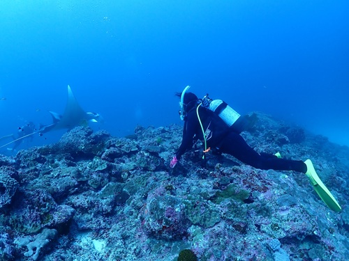 ドリフト3本マンタだらけ(*^-゚)v 2025年11月23日 晴れ/ 気温27.4度 /水温24.6度 ヽ(*⌒∇^)ノ はいさ~い 3連休とあって石垣島はだいぶ賑わっていますよ! 本日のお客様は、久しぶりにご来店のナオコさんおひとり様! マンタ狙いのリクエストとなりましたので、乗り合いにてドリフト3本コースへと行ってきました。 1本目エントリーしたらギンガメアジの真上でビックリw(゜o゜)w ゆーっくり降りて行ってマンタも3枚ゲット! 2本目はマンタ5枚とギンガメアジ(*’Ⅴ`*)Happy☆+゜ 3本目はヨナラでマンタ10枚以上をゲットしましたが中々まとまってくれなくて・・・ ☆ 今 日 の 海 遊 び ☆ 明日もドリフト3本コースへ行ってきます!