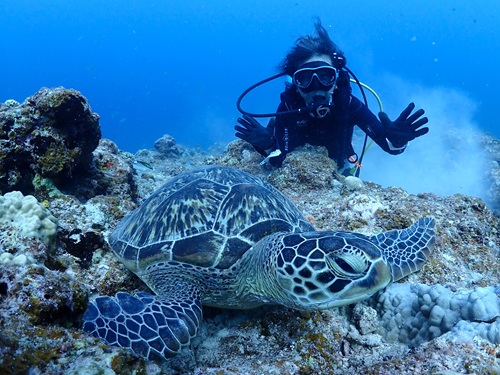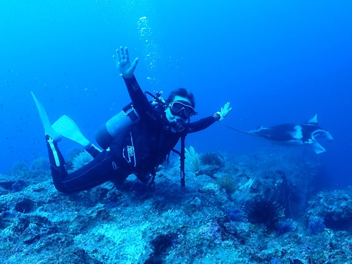 念願のマンタ様 (*^-゚)vィェィ 2025年9月5日2025年9月5日 晴れ/ 気温33.2度 /水温29.2度 ヽ(*⌒∇^)ノ はいさ~い 石垣島は昨日から旧盆入りし、各地域にて旧盆伝統のアンガマーやエイサーで盛り上がっていますよ! 本日のお客様は、3ダイブコースへご参加のマユミさんおひとり様! ど~してもマンタが見たいとのことでマンタリクエストのマンツーマンダイビングへと行ってきましたσ(^○^) 1本目は大崎にてカメコースへ! 4個体のアオウミガメに癒されながらマタ~リ潜ってきましたo(^▽^)o 2本目からは期待を込めてマンタコースへ! さ~て今日の結果は・・・ ☆ 今 日 の 海 遊 び ☆ マユミさんの近くを4枚のグ~ルグルっと! 念願のマンタ様に会えました マンタに会えて本当に良かったですね! 次回もmマンタリクエストにてお待ちしています。 Thanks ☆☆** v(o^▽^o)v**☆☆ Thanks