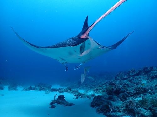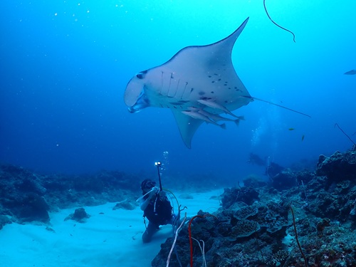 念願のヨナラマンタ (*^-゚)v 2025年8月25日 晴れ/ 気温33.3度 /水温28.2度 ヽ(*⌒∇^)ノ はいさ~い 石垣島は好天が続き絶好の海日和で~す。 本日のお客様は、2日目最終日のサキちゃんおひとり様! 今日も乗り合いにてマンタ狙いのドリフト3本コースへのご参加です(v^ー°) 今日はゾネ・ゾネ・ヨナラの3本勝負! 1本目はノーマンタでしたが近距離のギンガメとバラクーダに大満足ъ( ゚ー^) 2本目、3本目はリクエストのマンタも現れて最高の海遊びとなりました(*’Ⅴ`*)Happy☆+゜ ☆ 今 日 の 海 遊 び ☆ ヨナラで念願のマンタが見れて良かったですね! 次回9月もマンタと一緒にお待ちしています。 Thanks ☆☆** v(o^▽^o)v**☆☆ Thanks